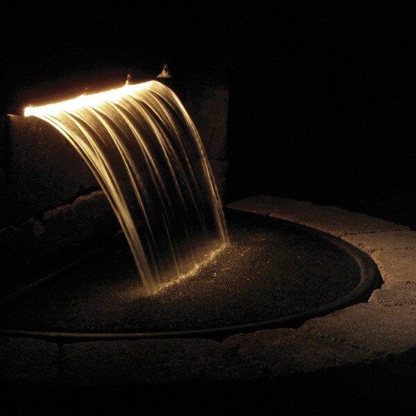 Colorfalls produce a sheer of lighted water emerging from a concealed source inside vertical walls