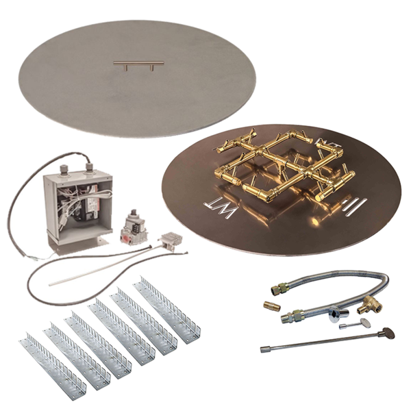 30" Circular Plate, CFB180 Original Crossfire Brass Fire Pit Insert Kit - NG, Electronic Ignition