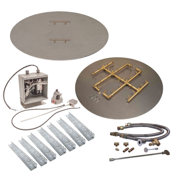 36" Circular Plate, CFB290 Original Crossfire Brass Fire Pit Insert Kit - LP, Electronic Ignition