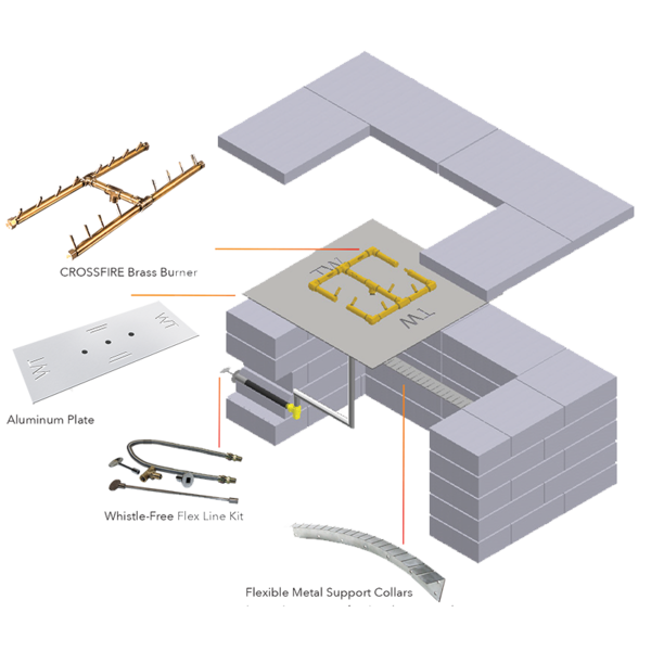 The Crossfire Match Lit H-Style Brass Gas Fire Pit Burner Kits by Warming Trends provides one of the most unique and innovative gas fire pit burner systems available. The heavy duty brass construction ensures an exceptionally high quality product that's designed for long lasting use outdoors while the unique Crossfire™ burner system features an innovative design that combines a specific air to gas mixture ratio to produce a taller, brighter flame. Intended for use with either propane or natural gas, these burners use close to half the fuel of conventional gas burners because of the unique regulation system. Available in a range of sizes and BTU ratings, the Crossfire™ burner offers a corrosion resistant product backed by a full lifetime warranty.